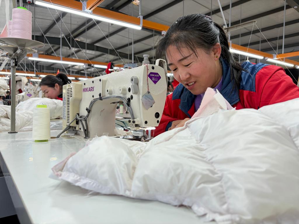 “我们去年购买了纺织机械,提高了工作效率,尤其像绗线这样的活,不到几分钟就完成了。再有几天,我们就能全部完成订单。”卢亚明说,春节后,他们将进行扩产,继续招工。
