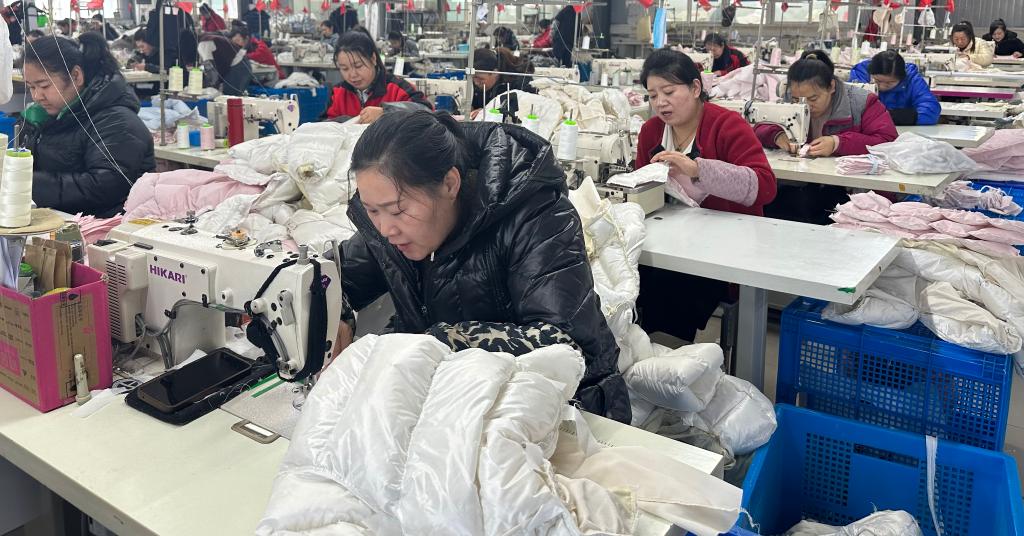 这家拥有200多名工人的服装企业,位于甘肃省定西市通渭县平襄镇。企业负责人卢亚明介绍,为在春节前交付来自山东客户的订单,员工们正马不停蹄地赶工。“实行计件工资制,多劳多得,大家干劲都很足。”卢亚明说。