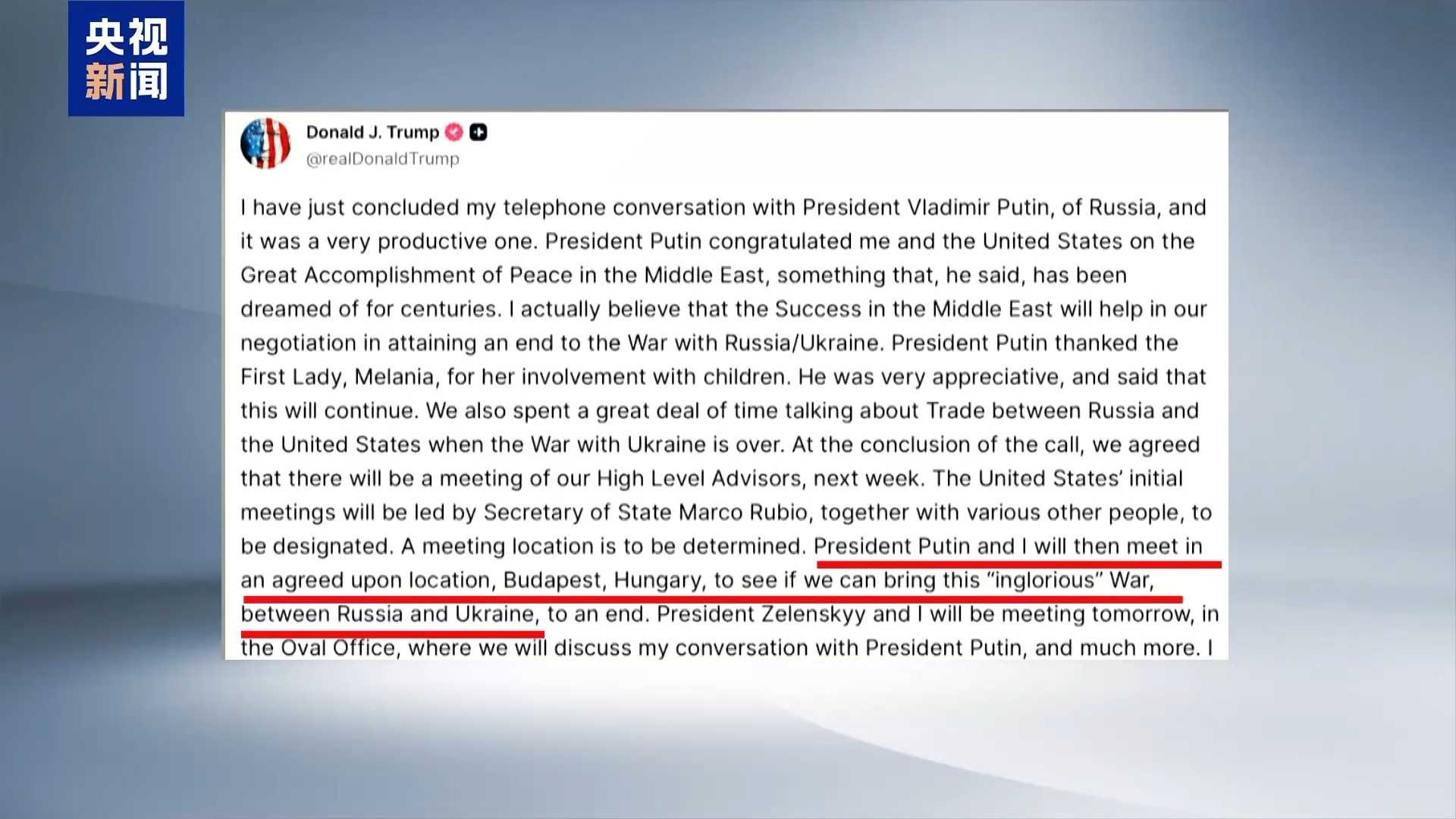美国总统特朗普16日曾在社交媒体上发文说,他将与普京在布达佩斯举行面对面会晤。但他没有提及两人会晤的具体日期。
